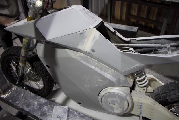 Studio models allow visualization of major components such as battery packs, fuel tanks, suspension elements, and fairings within the overall design envelope.